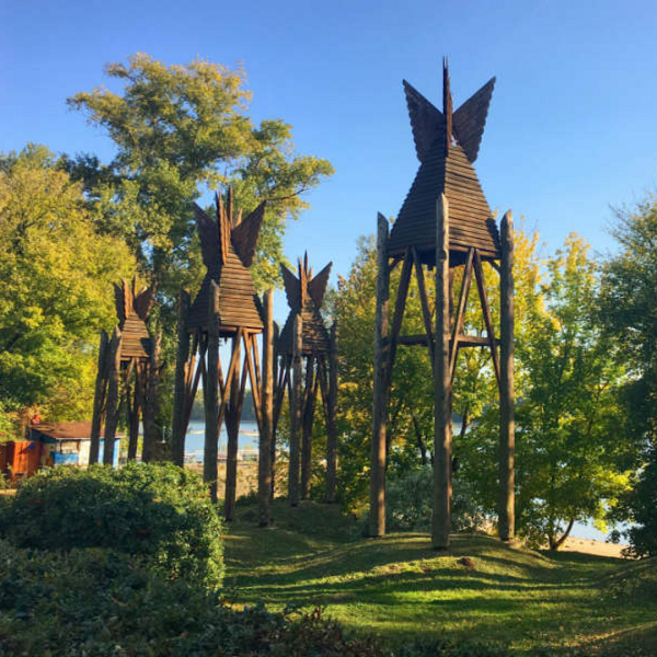 Verőcén a Duna-parton áll a hét monumentális harangláb, amely a honfoglaló hét vezérnek állít emléket. Ezért kapta a Hét vezér harangja nevet. A műalkotást Makovecz Imre és csapata készítette, és eredetileg Budapesten a Hősök terén mutatták be.